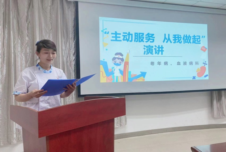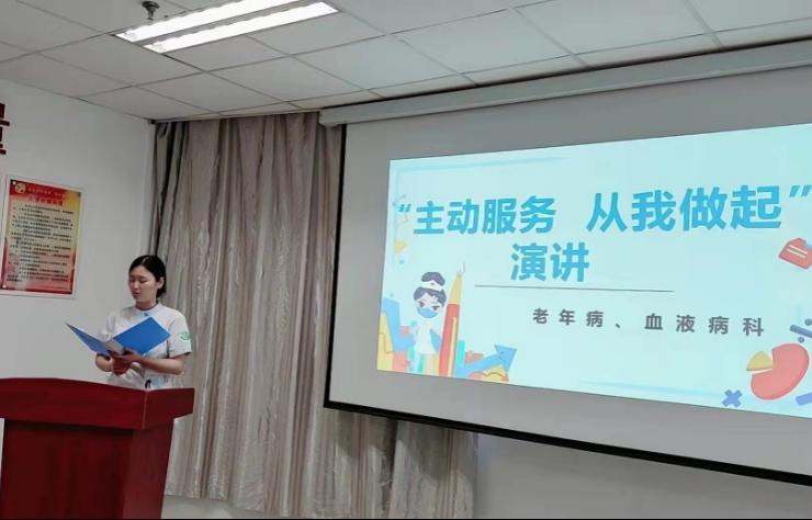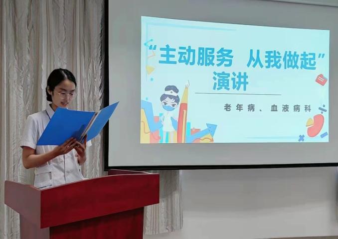 7月21日,乐鱼手机站入口老年病、血液病科护理单元组织开展“主动服务 从我做起”主题演讲展示与交流活动。