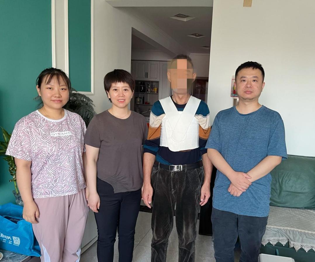 随后,贺阳阳为老人测量血压、血氧饱和度、血糖等。刘春医生仔细听诊老人肺部情况,查看伤口愈合情况,结合测量数值,对老人的口服药品做调整。同时,根据老人目前身体恢复的情况,护士长孙金艳对其日常活动,如起床、下床、外出运动等给予详尽指导,并督促老人按时服药,养成良好的生活习惯,保持好的心情状态。临别时,老人及其家属对胸心外科医务人员的到来表示衷心感谢。